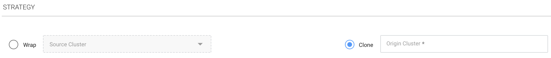 Choose the import strategy you would like to use and enter the relevant Origin Cluster or Source Cluster.